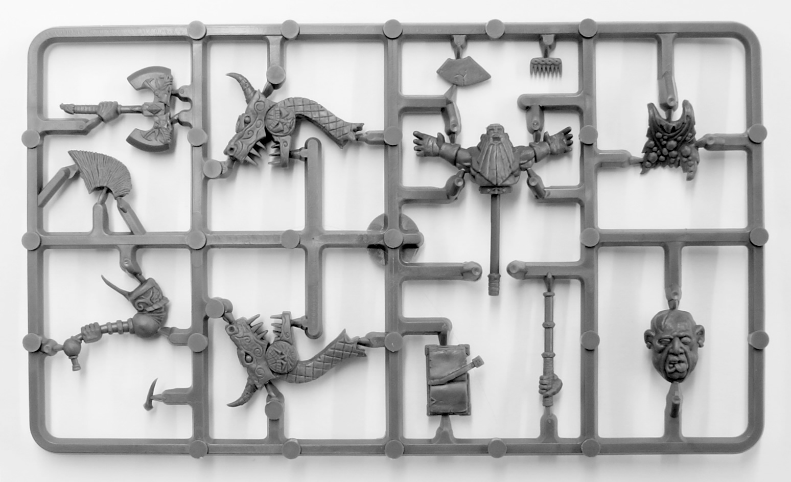 The Dwarf Berserkers Regiment box contains twenty 20mm bases, one regiment movement tray, five trooper sprues and one command sprue, allowing to assemble a 20 figures regiment: 17 troopers, a musician, a standard bearer and a champion.
