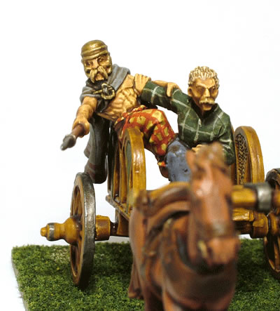 This chariot shows the symbiotic relationship that charioteer and driver would have toi have as they clasp wrists to allow the charioteer to lean out and spear the enemy!