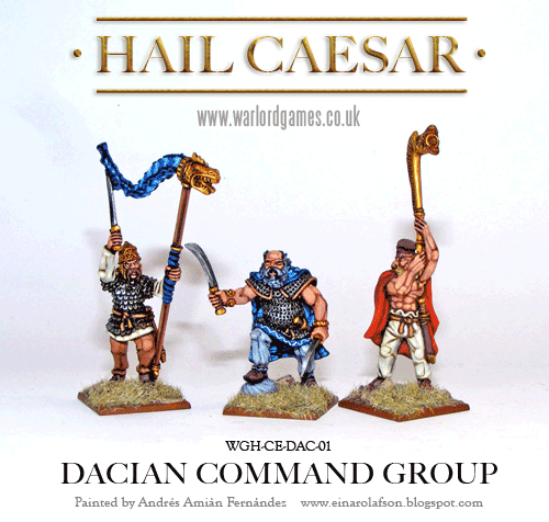 Warlord's new Dacian command group are a brutal front rank for any Legionary to come across. They carry a Draco standard fluttering its Serpent shaped head in the wind. One of them rasps out a blaring call on his carynx encouraging his followers to greater heights of ferocity. If that was not enough, the third man in this party is a broad shouldered brute who scorns the traditional shield and instead carries two lethal looking falx hand axes, all the better to batter Roman shields down with.