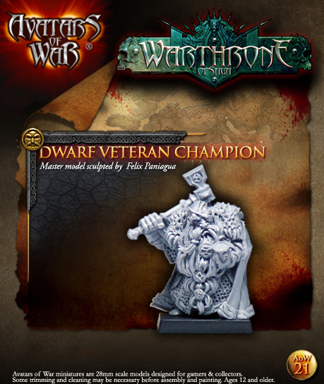 The Avatars of War Dwarf Veteran Champion blister pack contains a single Dwarf model.