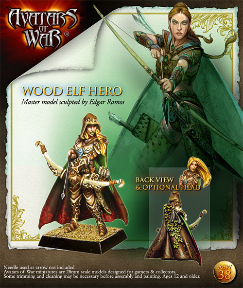 The Avatars of War Wood Elf Hero (or rather Heroine) blister pack contains a single Wood Elf Hero model.
